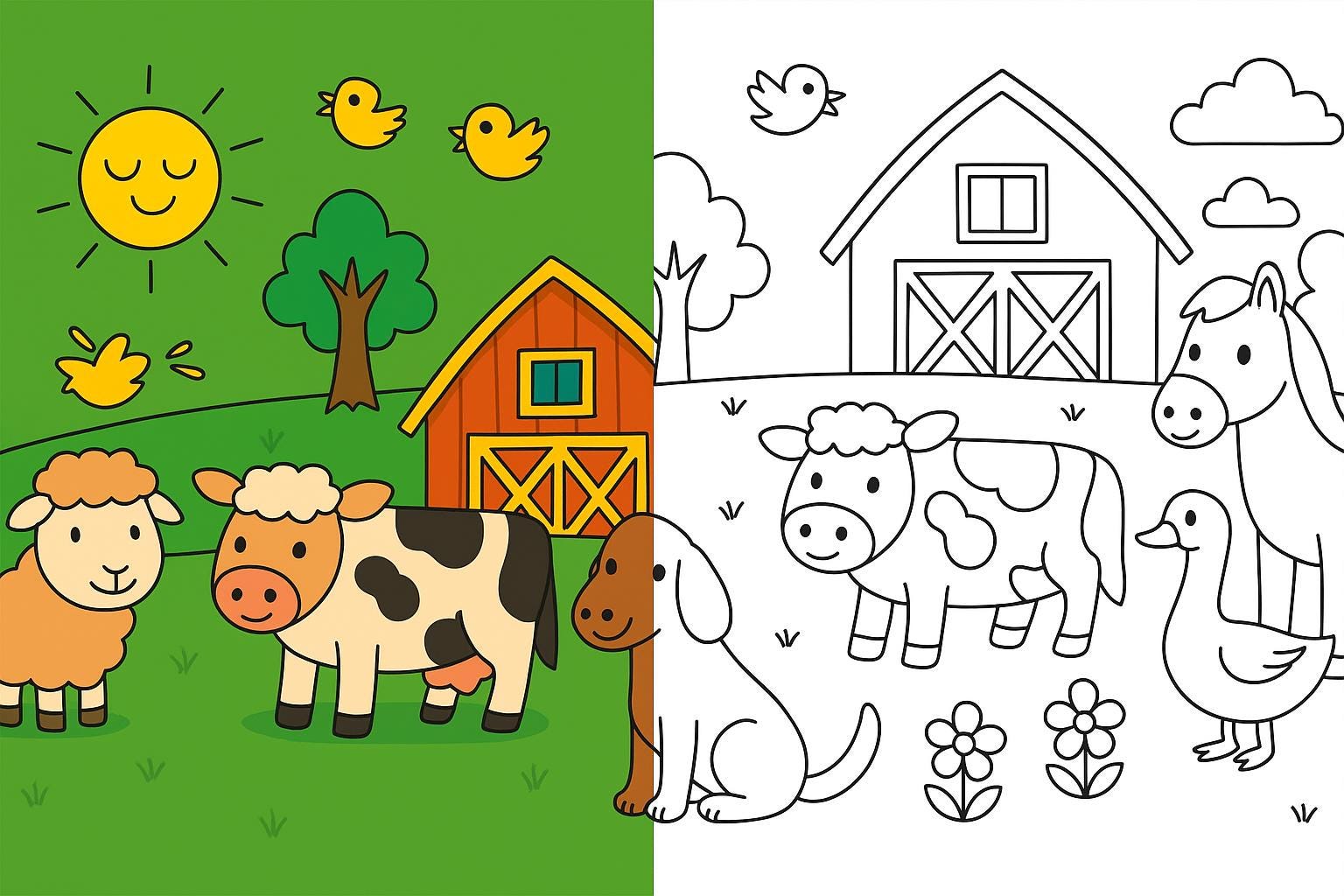 No boots, no mud, no hay in your hair — just adorable farm animals and coloring fun! 🐥🌾