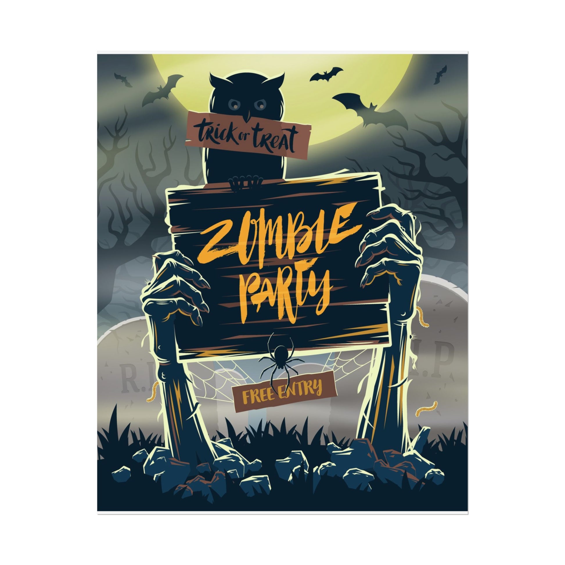 Zombie Party Rolled Posters | Halloween Decor, Spooky Wall Art, Trick or Treat Party, Haunted House Decoration, Gift for Halloween Lovers